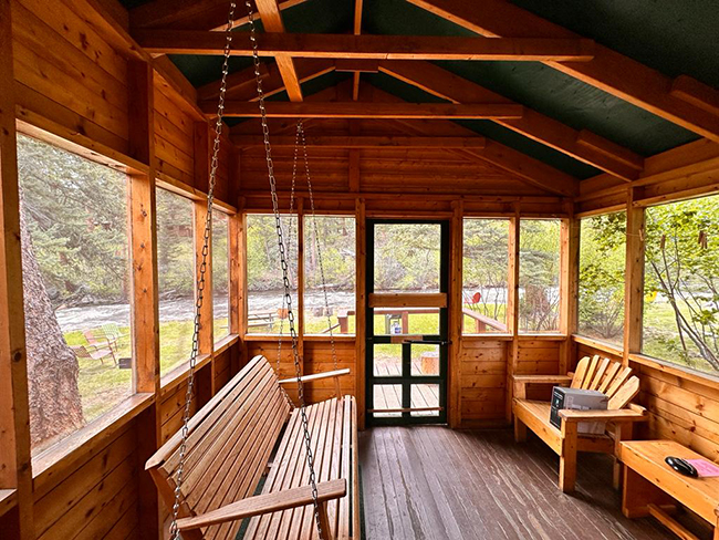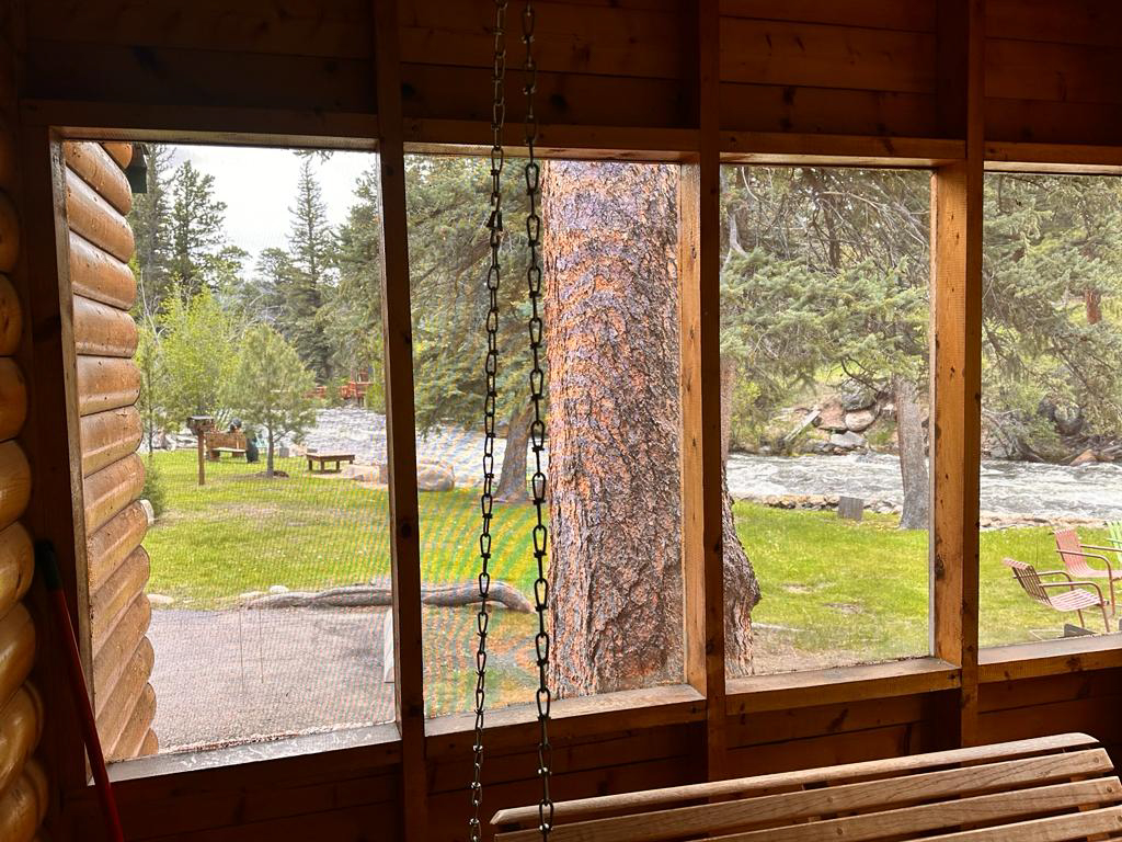 We Four has a fully functional kitchen, living and dining areas, a smart TV to stream your favorite apps, and a screened porch with a swing overlooking the highly audible, fast-moving, Big Thompson River.