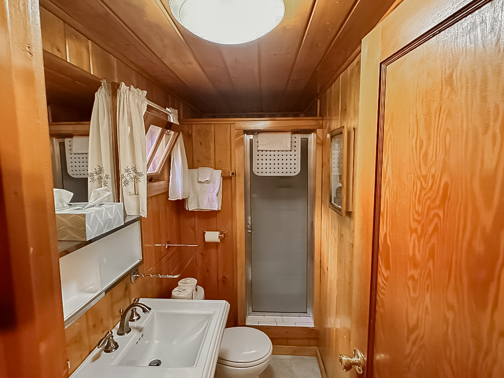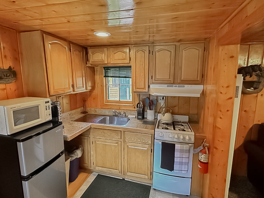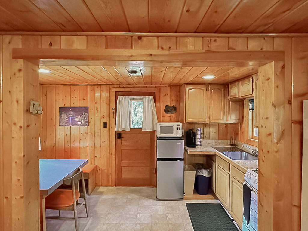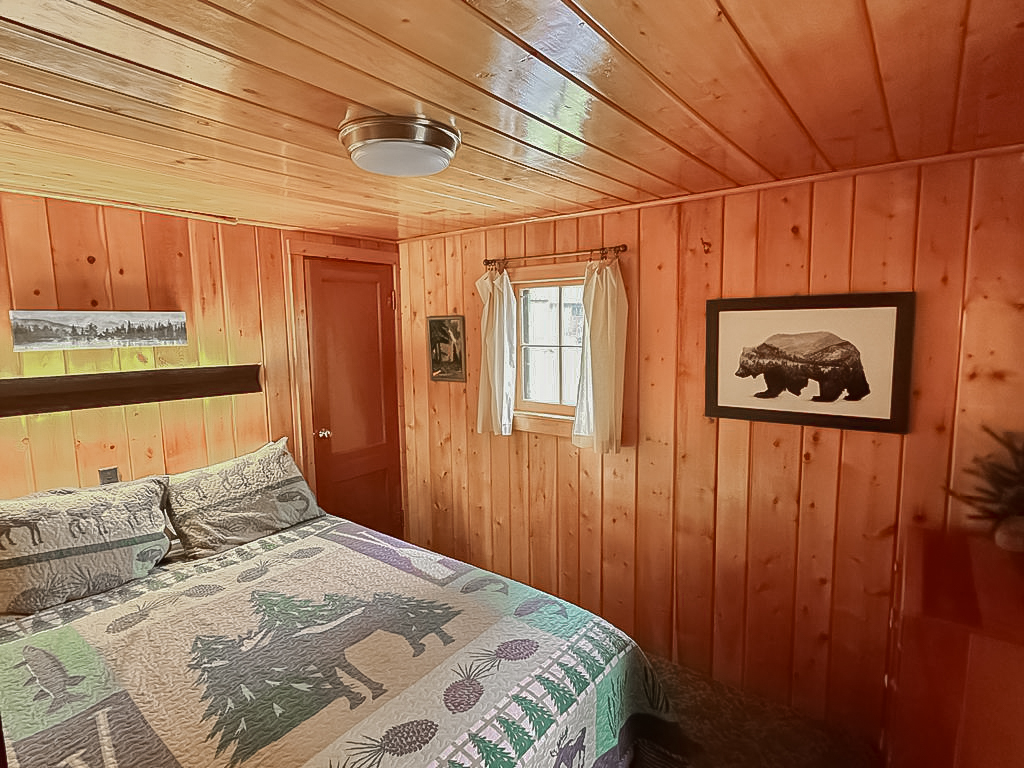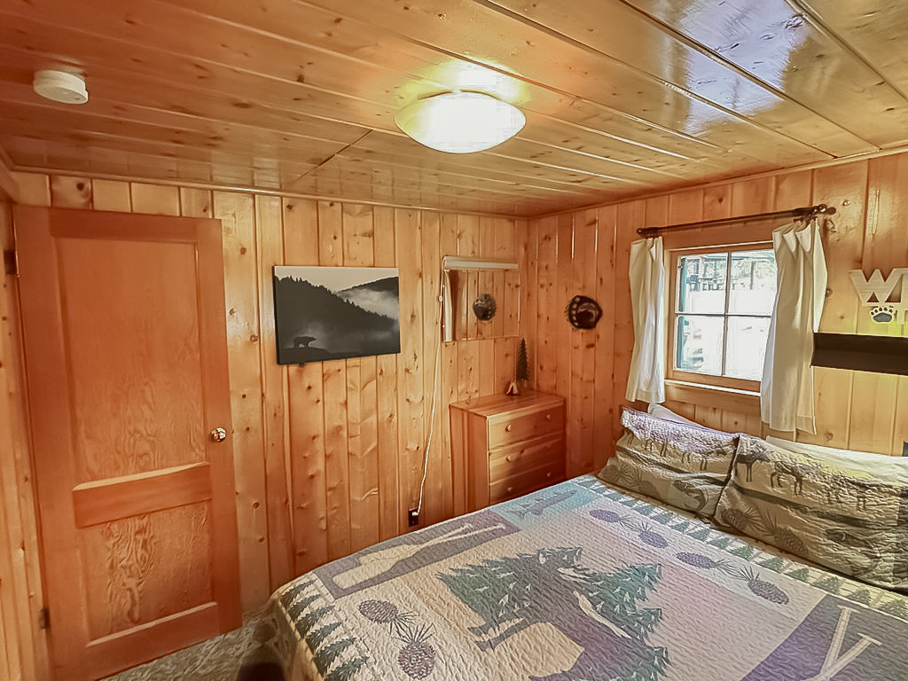 Located directly on the river’s edge in the center of our resort, We Four is a large 2-bedroom cabin with 2 queen-sized beds. It is nestled comfortably in the midst of a heavily wooded area providing some welcome shade when needed.