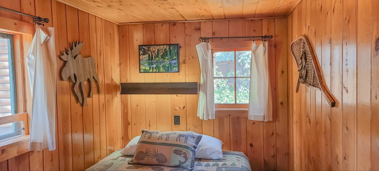 Located directly on the river’s edge in the center of our resort, Shemara is a large 2-bedroom cabin with 2 queen-size beds. It is nestled comfortably in the midst of a heavily wooded area providing some welcome shade when needed.