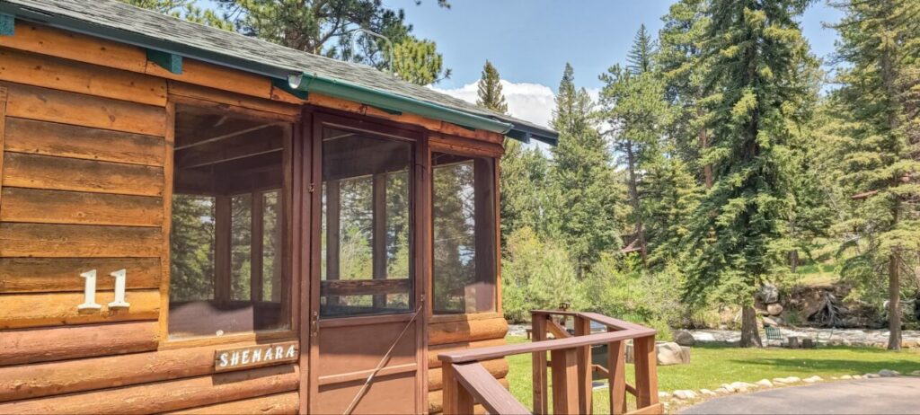 Shemara has a fully functional kitchen, living and dining areas, a smart TV to stream your favorite apps, and a screened porch with a swing overlooking the highly audible, fast-moving, Big Thompson River.