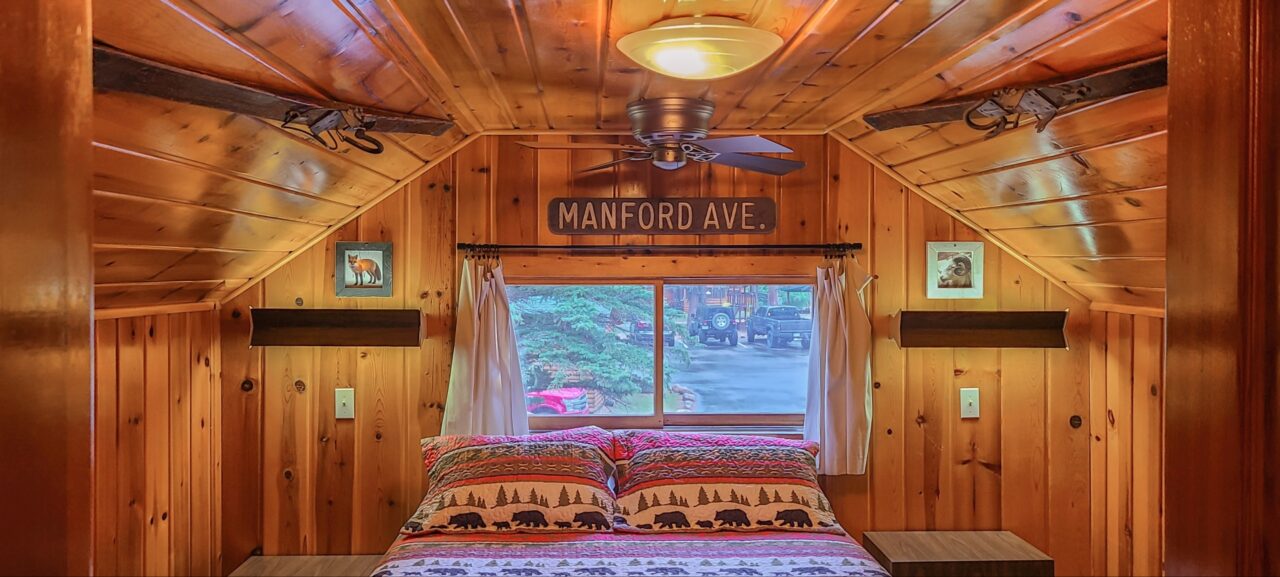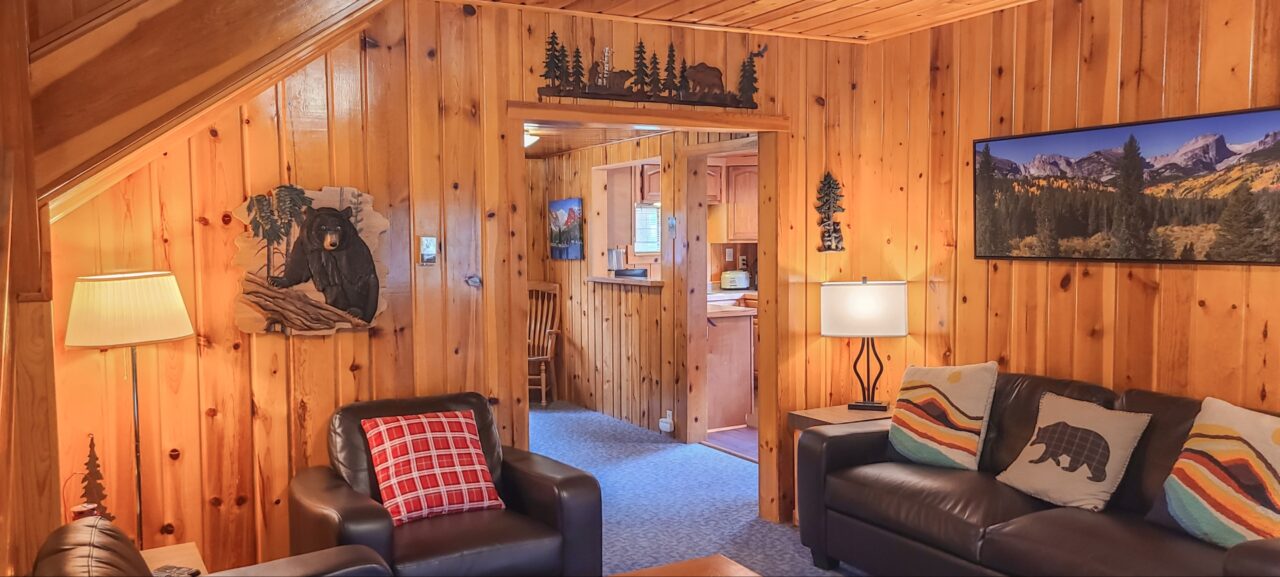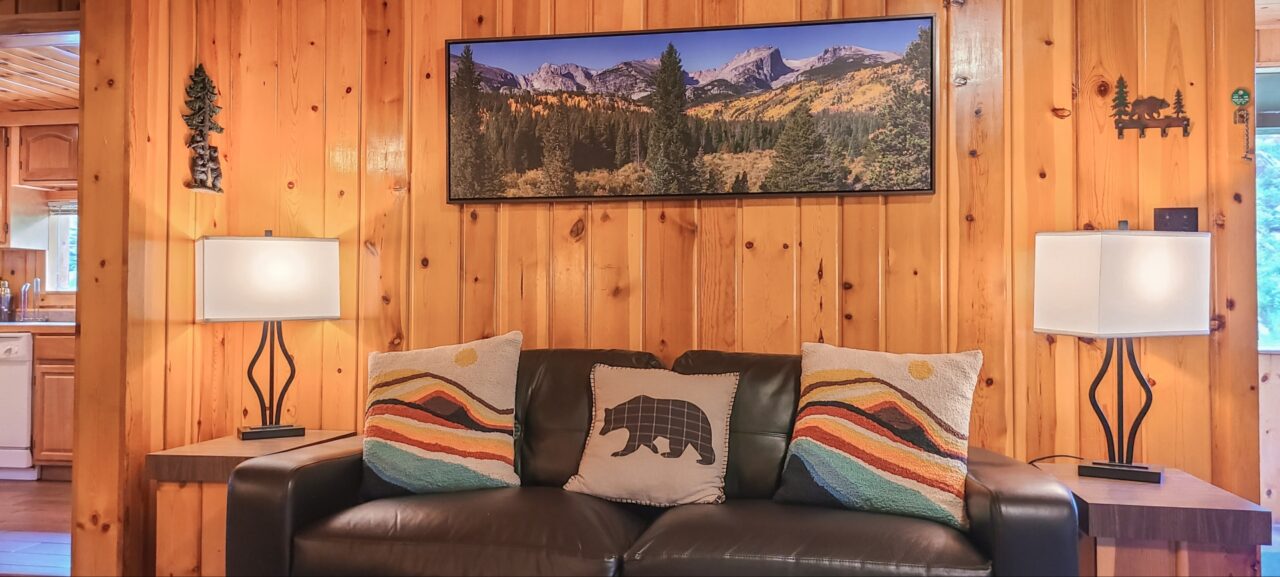 Located on the river’s bank, Naughty Pine is the flagship of the cabins in Idlewilde. Naughty Pine is the only 2-story, 3 bedroom, 2 bathroom cabin complete with a stone fireplace.