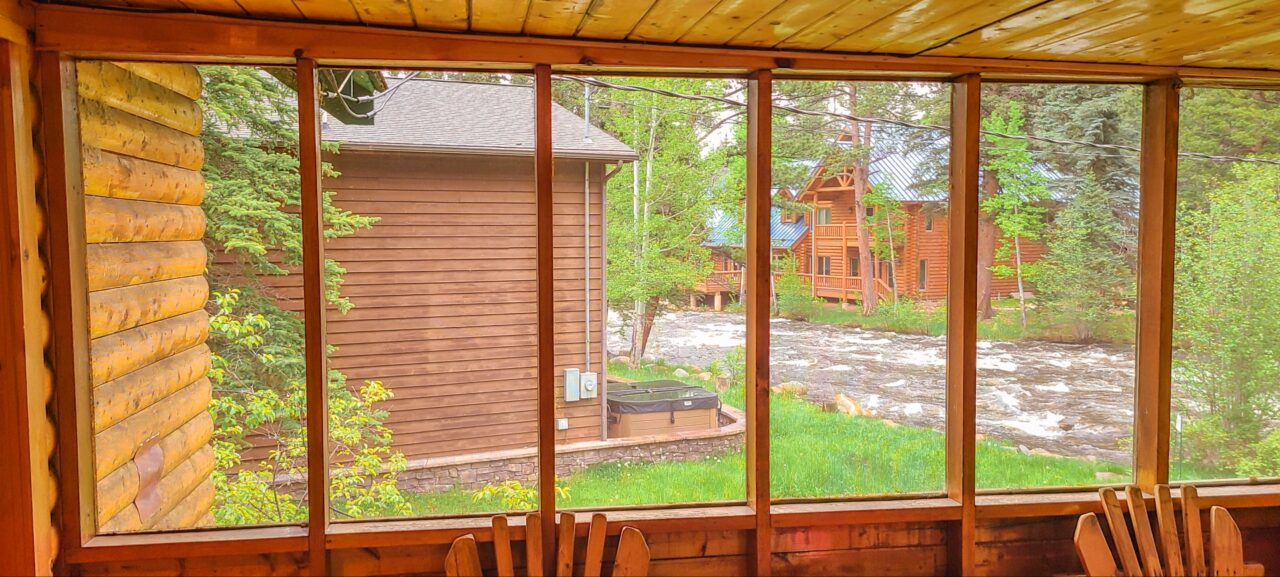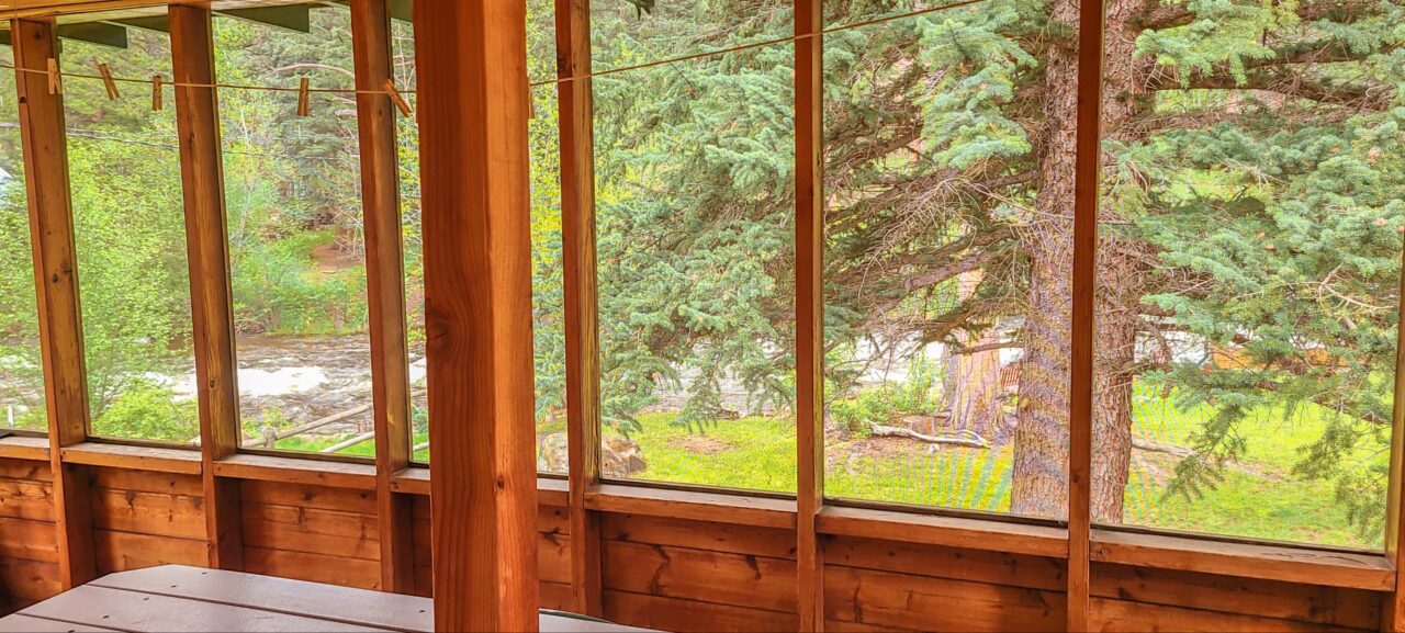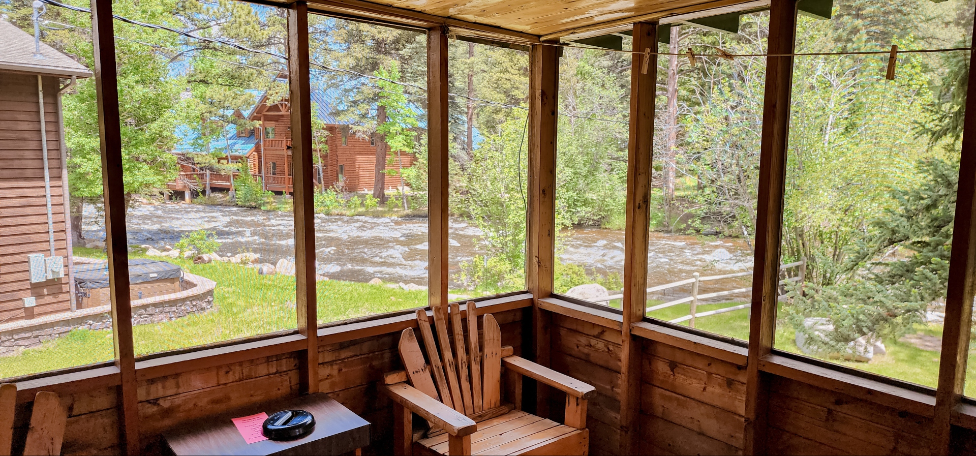 Naughty Pine has a fully functional kitchen, a large living area, dining areas in the kitchen and on the screened back porch, bathrooms with tub/shower combinations on the upper and lower floors, a smart TV to stream your favorite apps, and screened porches on the front and rear entrances overlooking the highly audible, fast-moving river.