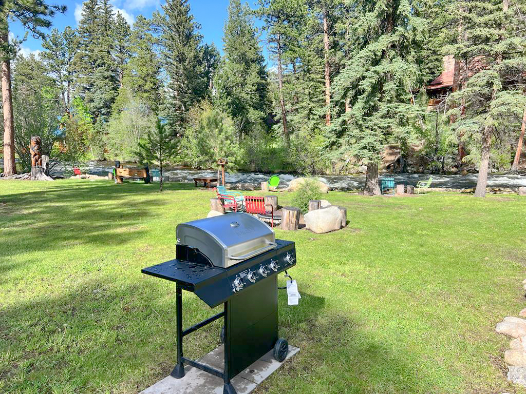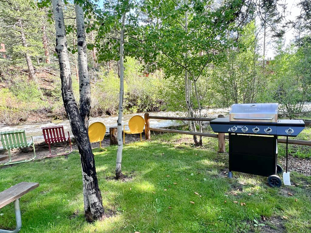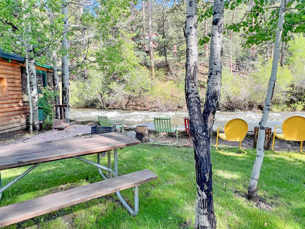 Excellent trout fishing, picnic tables, barbecue grills, and outdoor furnishings are available just outside the door.