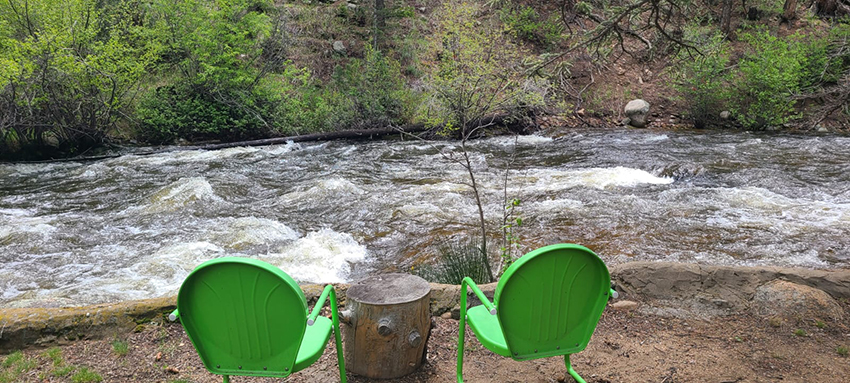 Located at the base of 100 ft pine trees, Riverside is in a heavily shaded area with picnic tables, barbecue grills, and outdoor chairs all just outside the door. Riverside is extremely close to the river’s edge, so consider this when traveling with small children.