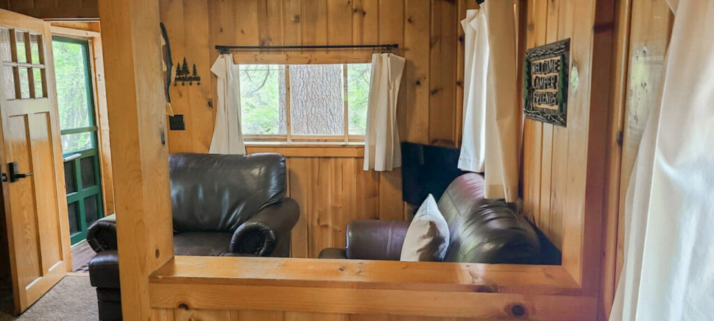 Riverside is our premium 1-bedroom cabin located on the river’s edge. With 2 full-size beds, this cabin is designed to accommodate a maximum of 4 people. The sound of the rushing river is highly audible throughout the entire cabin.